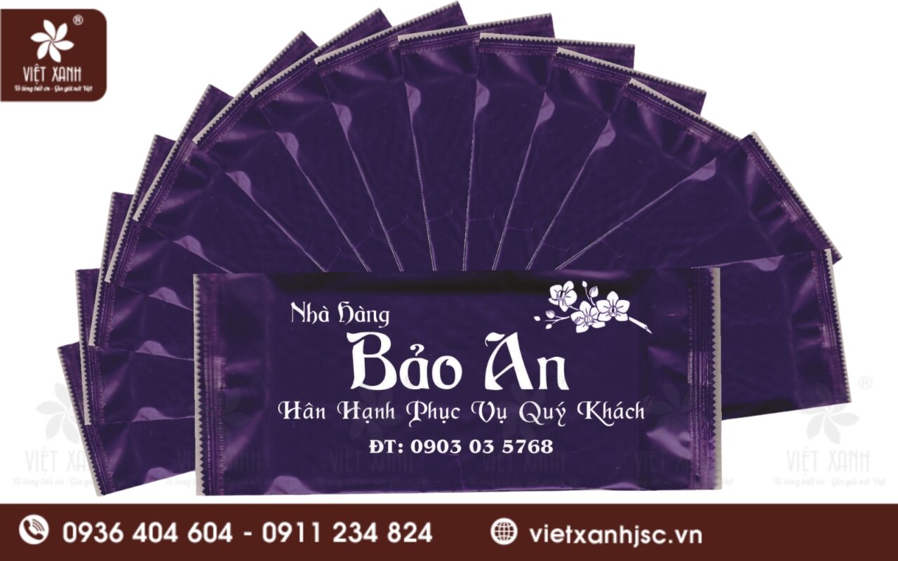 Khi có nhu cầu đặt khăn lạnh Nha Trang, đội ngũ chuyên viên đồ họa của Việt Xanh sẽ hỗ trợ bạn thiết kế và tinh chỉnh bao bì vô cùng kỹ lưỡng. Dù là phong cách thiết kế sang trọng, hiện đại cho các khu resort 5 sao hay phong cách gần gũi, năng động cho các quán hải sản bình dân, chúng tôi đều đảm bảo độ sắc nét hoàn hảo trên bề mặt vỏ nilon màng ngọc hoặc màng ghép phức hợp. Logo, thông tin liên hệ và hình ảnh của quán sẽ trở thành một công cụ quảng bá trực tiếp, sắc bén, giúp thương hiệu của bạn khắc sâu vào trí nhớ của du khách.