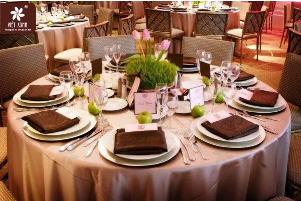 Trong ngành dịch vụ ẩm thực (F&B), ấn tượng đầu tiên của thực khách khi bước vào không gian nhà hàng không chỉ đến từ mùi hương quyến rũ của món ăn, mà còn xuất phát từ sự chỉn chu, tươm tất của khu vực dùng bữa. Việc setup bàn tiệc đúng chuẩn, tinh tế chính là ngôn ngữ giao tiếp không lời mạnh mẽ nhất, thể hiện đẳng cấp, sự tôn trọng khách hàng và quy mô hoạt động bài bản của cơ sở kinh doanh. Dù bạn đang vận hành một nhà hàng món Việt truyền thống, một không gian ẩm thực Hoa – Nhật hay một nhà hàng Âu sang trọng, quy trình bày trí bàn ăn luôn đòi hỏi những nguyên tắc khắt khe. Bài viết dưới đây sẽ hướng dẫn chi tiết các phong cách sắp xếp bàn ăn phổ biến, đồng thời mang đến giải pháp nâng tầm nhận diện thương hiệu trên bàn tiệc với hệ sinh thái vật dụng nhà hàng chuyên nghiệp từ Việt Xanh.